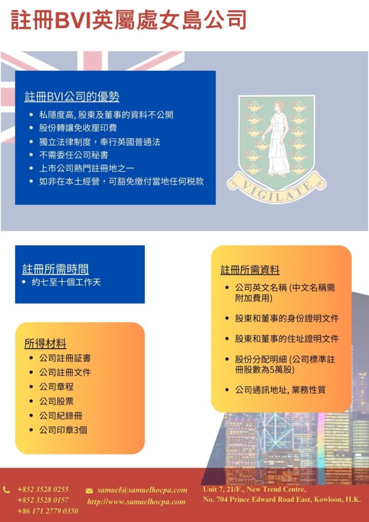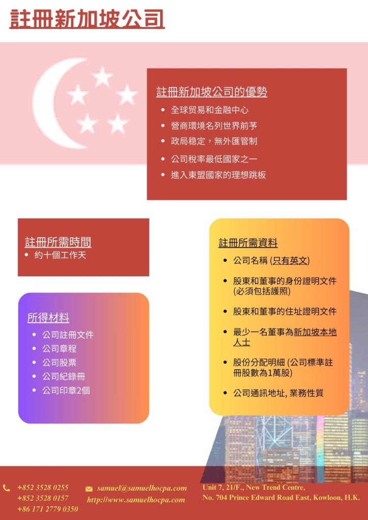成立離岸公司 現時很多企業也有跨國業務,成立海外公司有助企業快速開發當地市場,提升國際形象。一些國家和地區更製定一些特別寬鬆的稅制,例如離岸收入不須徵收任何稅項和作稅務申報、吸引世界各地投資者到當地成立離岸公司。有一些離岸公司的股東資料、股權比例、收益狀況等也有高度保密權利,很多時候在公眾查册不能隨時查到。 海外公司的主要用途: 作為控股公司 方便在當地市場運作 稅務策劃 上市計劃 保障股東資料 持有房地產及不動產 我們具多年成立海外公司的經驗,是可以成立最多不同海外公司的專業公司之一。而我們的註册執業會計師使我們有別於一般秘書公司、客戶在使用我們成立公司的服務後也可亨有一站式的專業服務。包括會計、稅務計劃、企業諮詢、商標註冊等。 註冊新加坡公司 註冊新加坡公司的優勢 全球贸易和金融中心 營商環境名列世界前芧 政局稳定,無外匯管制 公司稅率最低國家之一 進入東盟國家的理想跳板 註冊所需時間 約十個工作天 所得材料 公司註冊文件 公司章程 公司股票 公司紀錄冊 公司印章2個 註冊所需資料 公司名稱 (只有英文) 股東和董事的身份證明文件 (必須包括護照) 股東和董事的住址證明文件 最少一名董事為新加坡本地人士 股份分配明細 (公司標準註冊股數為1萬股) 公司通訊地址, 業務性質 註冊BVI英屬處女島公司 註冊BVI公司的優勢 私隱度高, 股東及董事的資料不公開 股份轉讓免收厘印費 獨立法律制度,奉行英國普通法 不需委任公司秘書 上市公司熱門註冊地之一 如非在本土經營,可豁免繳付當地任何稅款 註冊所需時間 約七至十個工作天 所得材料 公司註冊證書 公司註冊文件 公司章程 公司股票 公司紀錄冊 公司印章3個 註冊所需資料 公司英文名稱 (中文名稱需附加費用) 股東和董事的身份證明文件 股東和董事的住址證明文件 股份分配明細 (公司標準註冊股數為5萬股) 公司通訊位址, 業務性質